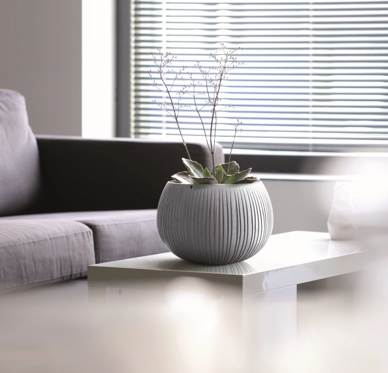 Teksturirano rebrasto oblikovanje in mat siva imitacija betona dajeta vašim rastlinam eleganten okvir, ki se poda v vsak prostor.