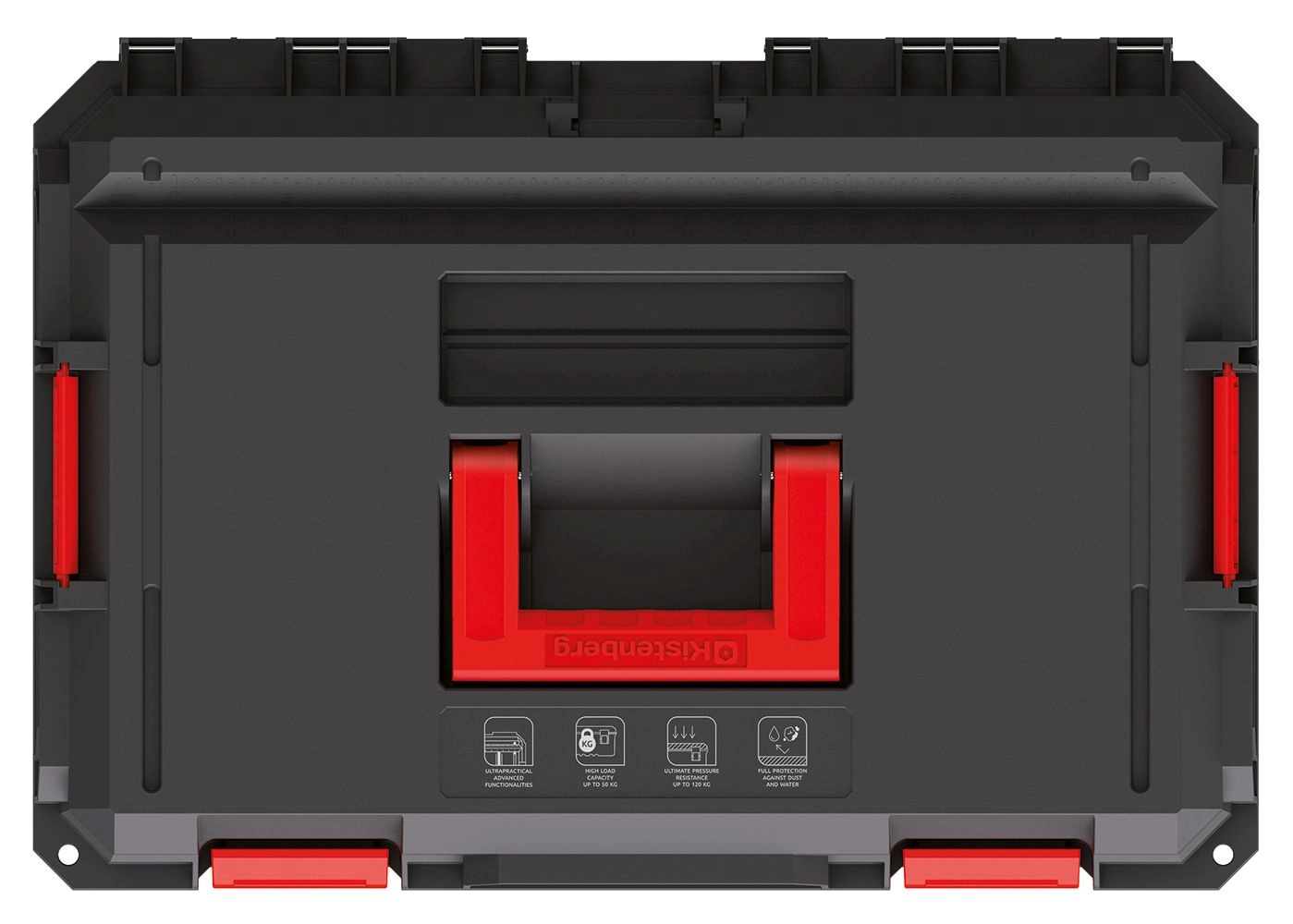 Zahvaljujoč vgrajenemu tesnjenju je kovček zaščiten pred prahom in vodo, medtem ko rebraste ojačitve povečujejo odpornost proti mehanskim poškodbam. Izbrani modeli pokrovov imajo aluminijaste vodila, ki omogočajo hitro pretvorbo v kompaktno delovno mizo.