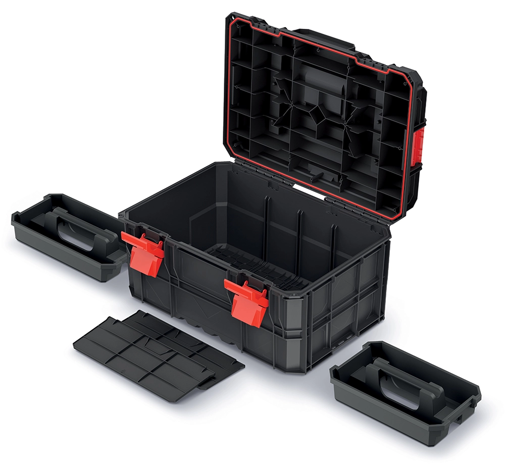 Kovček za orodje X-Block Pro je zasnovan za profesionalce, ki potrebujejo zanesljivo in odporno rešitev za prevoz in skladiščenje težkega orodja. Modularna konstrukcija omogoča enostavno povezovanje več škatel s pomočjo stranskih zapahov in tako ustvarja stabilen, prenosen sistem.