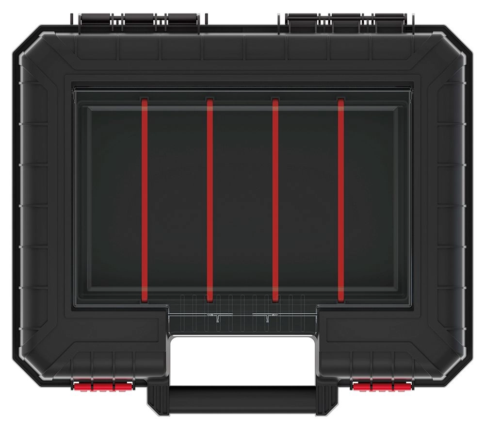 Iščete zanesljivo rešitev za shranjevanje in prenašanje orodja? Ta lahek, a izjemno čvrst kovček iz odporne polimerne zmesi združuje dolgo življenjsko dobo in premišljeno organizacijo. Zahvaljujoč prozornemu organizatorju s polikarbonatnim pokrovom imate potrošni material in drobnarije vedno na očeh in pri roki.
