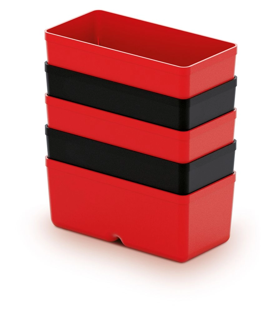 Set 5 mini škatel UNITE BOX pomaga ohranjati red pri vijakih, žebljih, vložkih in drugih drobnih delavniških potrebščinah. Vsaka škatla ima kompaktne dimenzije 110 × 55 × 132 mm in je izdelana iz lahke, a odporne plastike v univerzalni črni barvi.