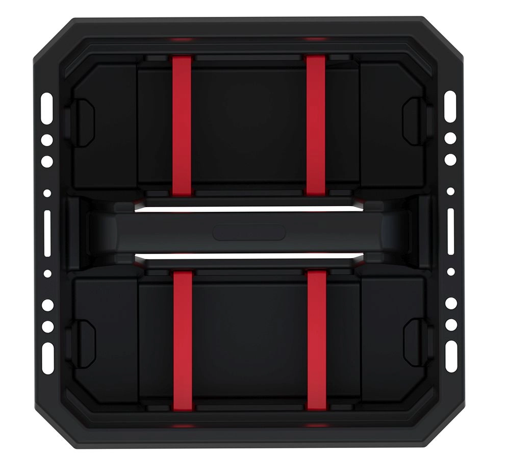 Kompakten transportni zaboj za orodje Kistenberg Cargo Plus ponuja prostornino 8 litrov, mere 300 × 300 × 133 mm in ergonomski ročaj za udobno prenašanje. Odpornost zagotavlja ohišje iz čvrste polimerne zmesi, odstranljive pregrade pa poskrbijo za pregledno organizacijo manjšega orodja in dodatkov v sodobni črno‑rdeči izvedbi.
