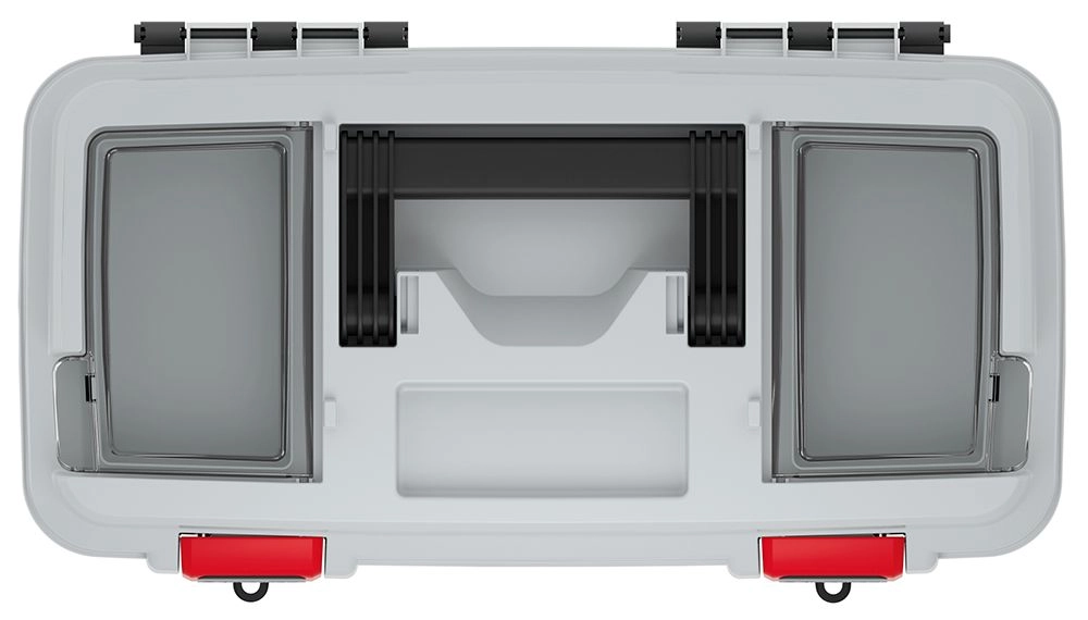 - Varno zapiranje: dvojne robustne zaponke trdno držijo pokrov na mestu.