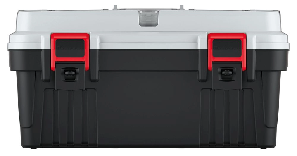 Čvrsta plastika z ojačanimi rebrastimi deli in kakovostnimi zapirali ščiti orodje pri prenašanju in shranjevanju, tako v delavnici kot na poti.