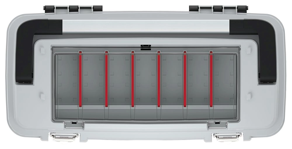 Zaklepni zgornji/zunanji predal z nastavljivimi pregradami ohranja vijake, bite ali vložke na svojem mestu, prozorni pokrov pa omogoča hiter pregled. Odstranljiv vložek omogoča, da imate najpogosteje uporabljeno orodje vedno pri roki, hkrati pa prihranite prostor v glavnem predelku.