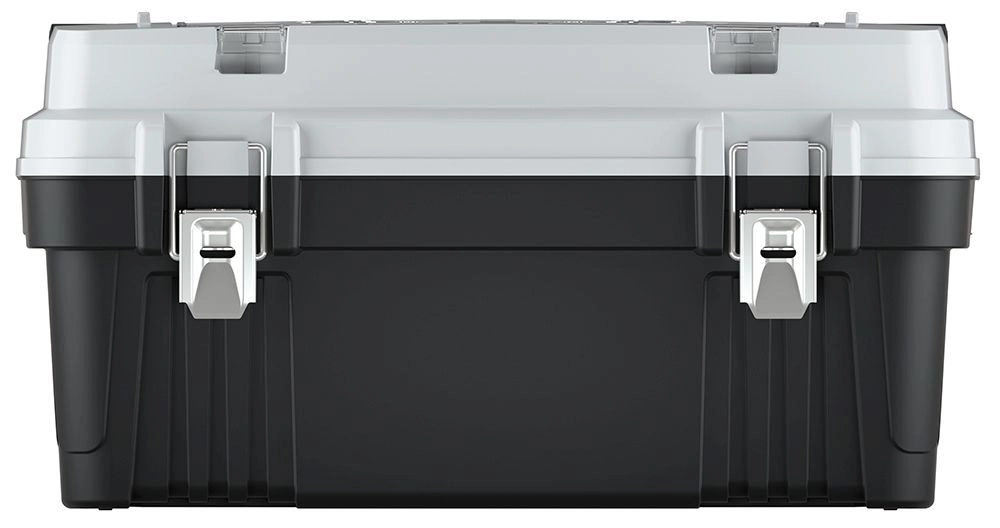 Dva trdna kovinska zapaha zagotavljata zanesljivo zaprtje škatle in zaščito orodja med prevozom in shranjevanjem.