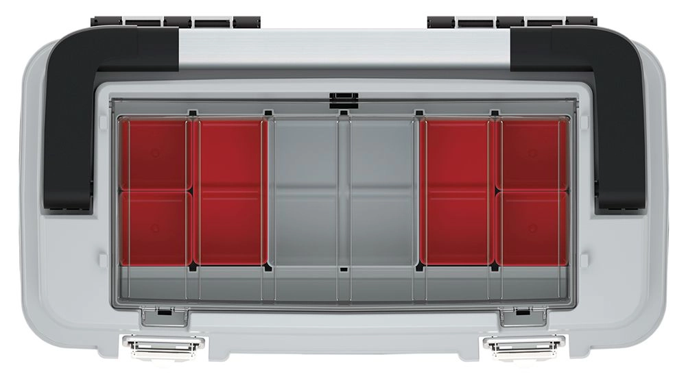 Prozoren pokrov in razdeljeni predelki ohranjajo vijake, vložke in druge drobnarije vedno pregledno na svojem mestu.