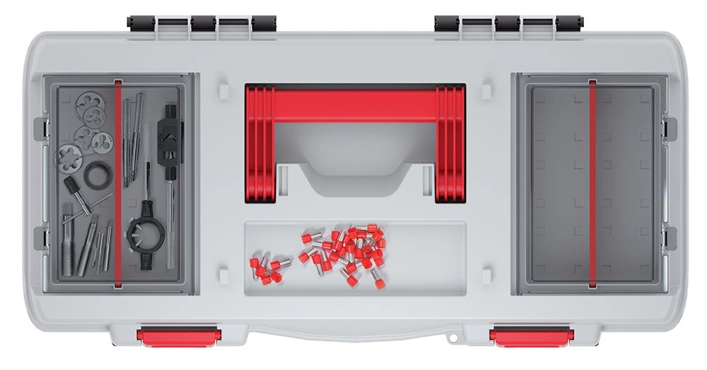 Kompakten in robusten EVO kovček za orodje je zasnovan za vsakodnevno uporabo. Zahvaljujoč pametni razporeditvi z odstranljivim organizatorjem in zunanjimi zapiralnimi predali boste imeli vijake, bite in merilnike vedno pri roki in varno shranjene.