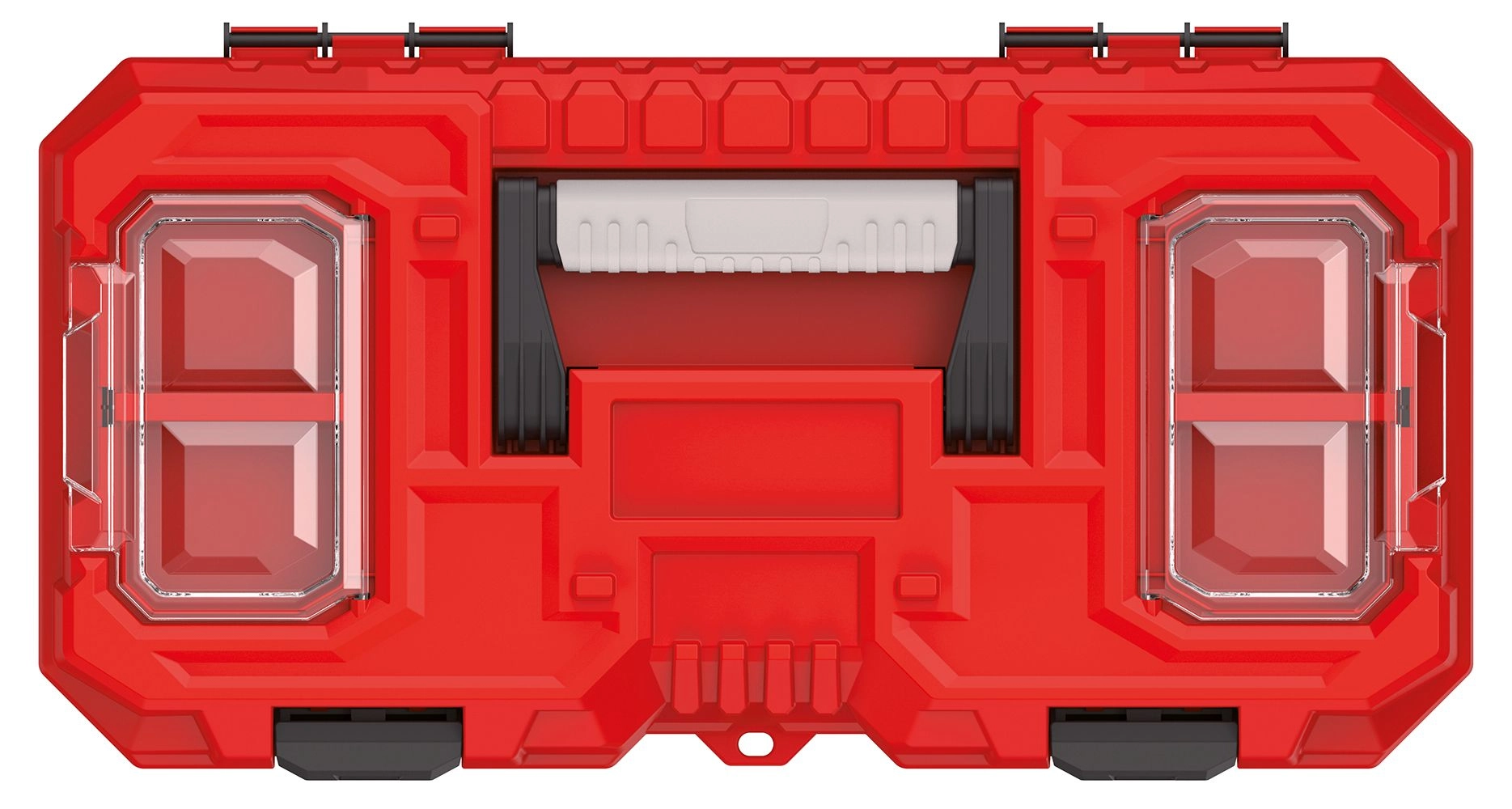 Zaradi trdnega ohišja, ojačanih vogalov in dveh masivnih zaponk je kovček pripravljen na vsakodnevno uporabo v delavnici in na terenu. Udoben ročaj v pokrovu ter premišljena razporeditev delata ta box idealno izbiro za obrtnike, domače mojstre in servisne tehnike.