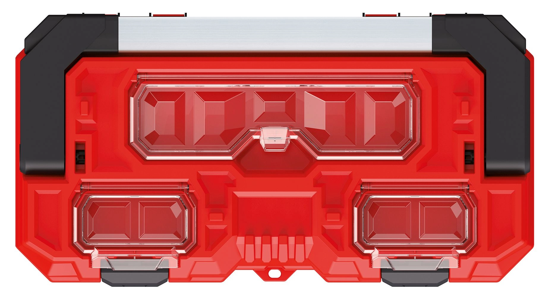 Zaradi kompaktnih dimenzij 496 × 258 × 240 mm se škatla zlahka prenaša in shranjuje, kljub temu pa nudi dovolj prostora za ključe, bite, izvijače in majhen pribor. Rdeča izvedba pomaga pri hitri identifikaciji med ostalo opremo.