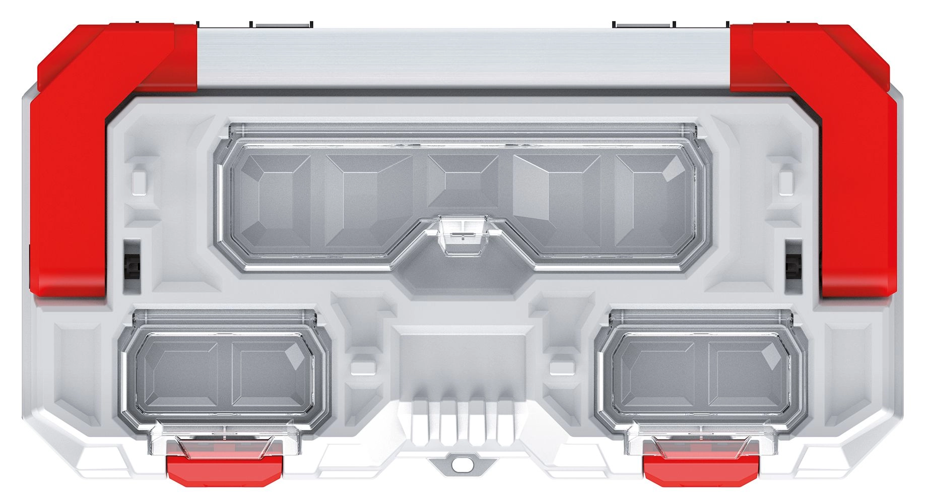 Kovček za orodje TITAN PLUS je zasnovan za obrtnike in domače mojstre, ki potrebujejo red, hitro orientacijo in odpornost. Robustno plastično ohišje ščiti orodje, medtem ko prozorni predalčki v pokrovu poskrbijo, da so vijaki, biti in druge drobnarije vedno pri roki. Zahvaljujoč kovinskemu ročaju se kovček udobno prenaša tudi pri polni obremenitvi.