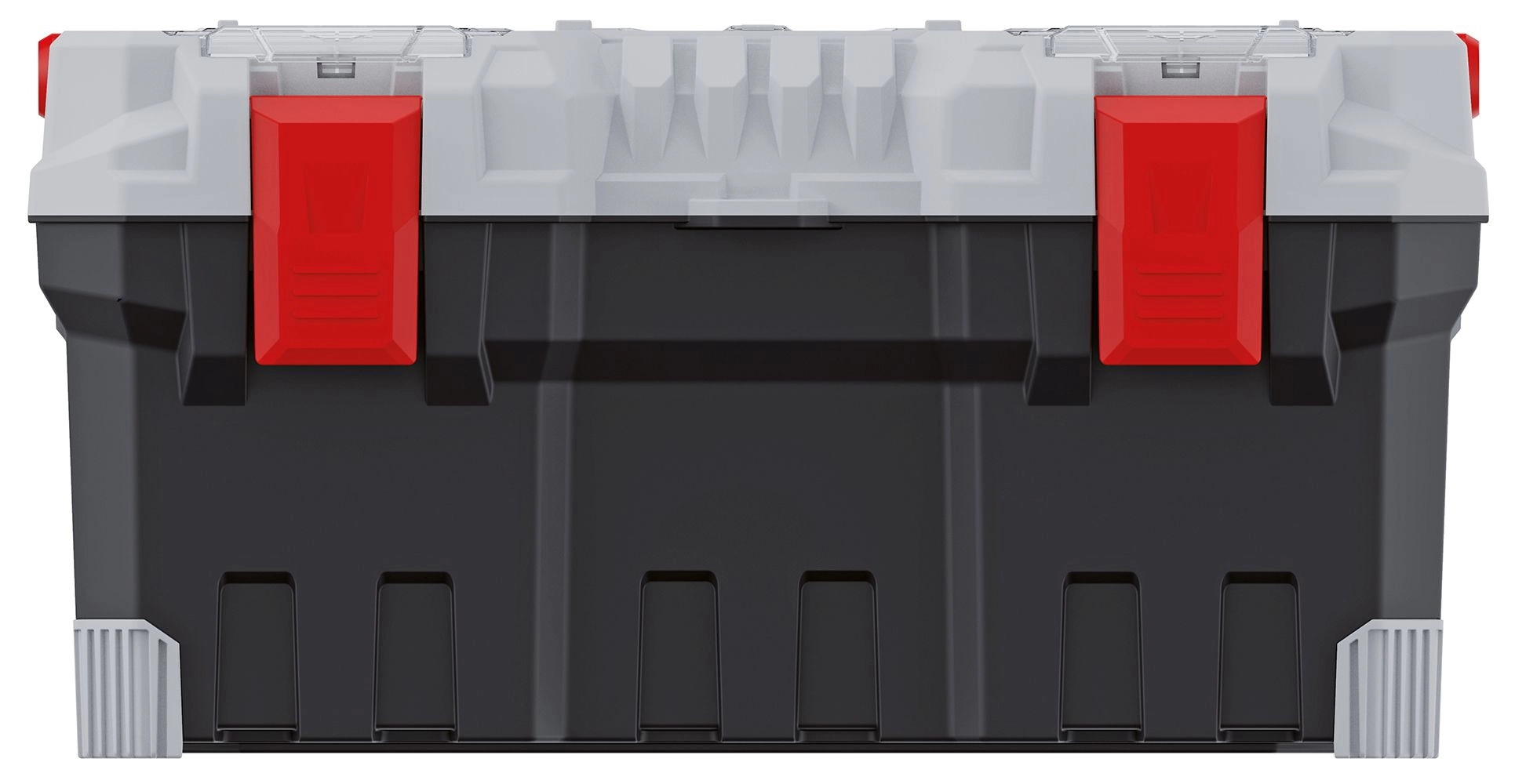 Čvrsta plastika z ojačanimi vogali in močni zapahi ščitijo vsebino pri prenašanju tudi v zahtevnih pogojih.