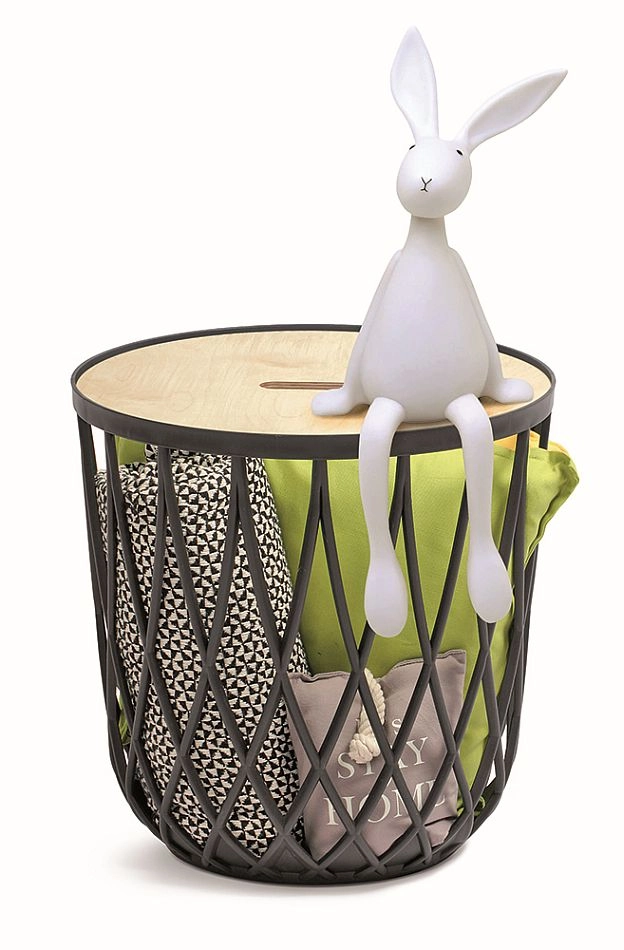 Deluje kot stilska shranjevalna košara, dizajnerski dodatek ter majhna klubska ali nočna mizica.