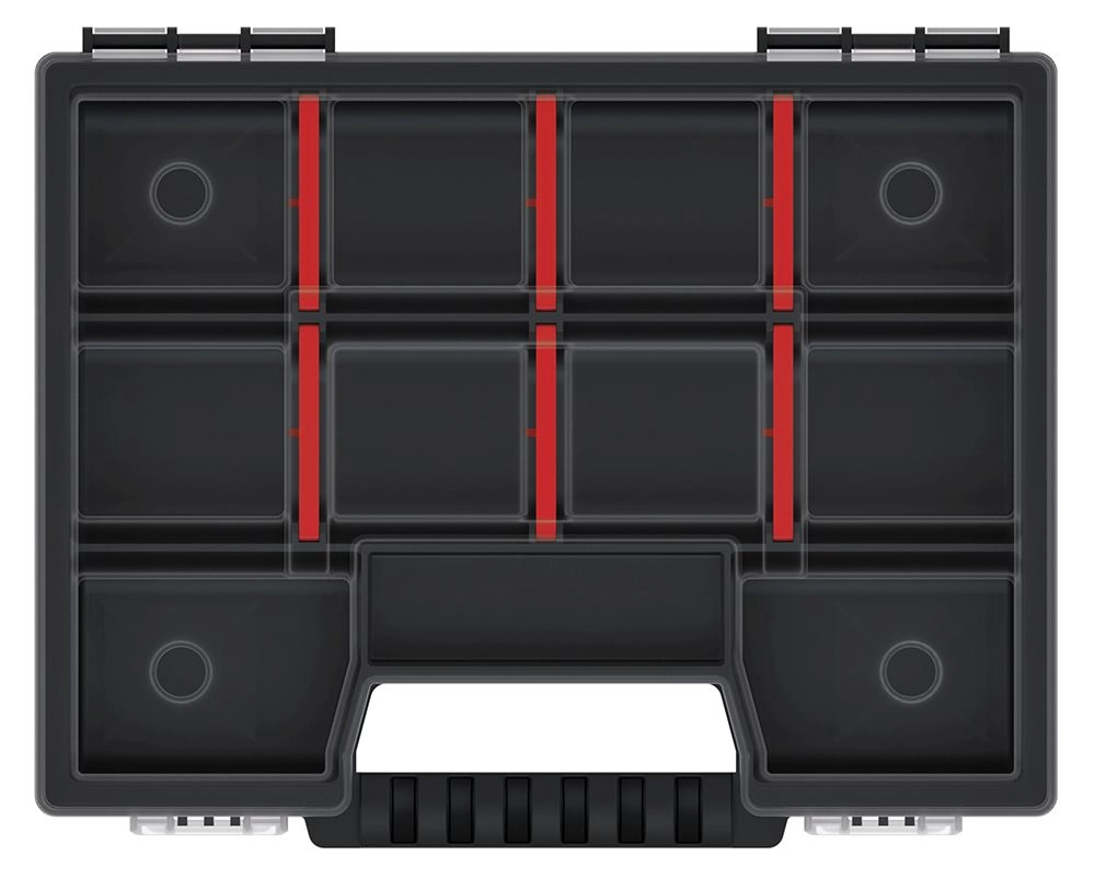 Iščete praktično rešitev za shranjevanje vijakov, matic, podložk ali ribiških drobnih pripomočkov? Plastični organizer Kistenberg NOR 08 prinaša pametno in pregledno razporeditev zahvaljujoč prilagodljivim pregradam, ki omogočajo, da notranjo razporeditev natančno prilagodite svojim potrebam. Prozoren pokrov prihrani čas – takoj veste, kje je kaj, brez nepotrebnega odpiranja.