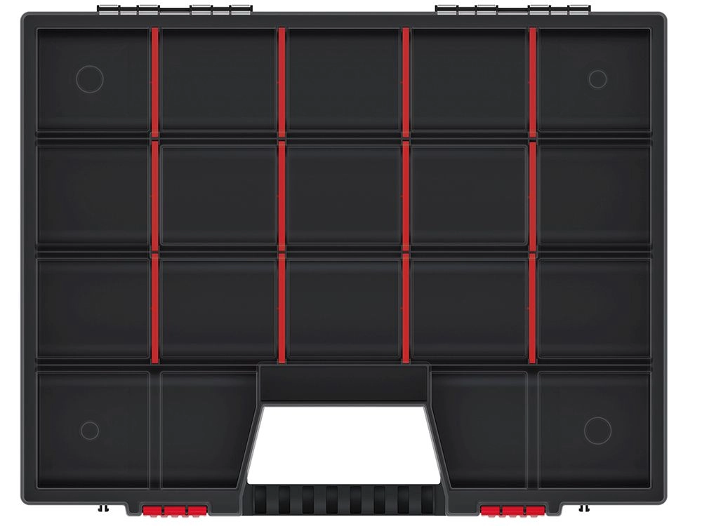 Ohranite red v delavnici, garaži ali gospodinjstvu z organizatorjem NOR, ki ga lahko zahvaljujoč 18 fleksibilno nastavljivim predalčkom natančno prilagodite svojim potrebam. Prozoren pokrov omogoča takojšen pregled nad vsebino, zato boste vedno hitro našli pravi del.