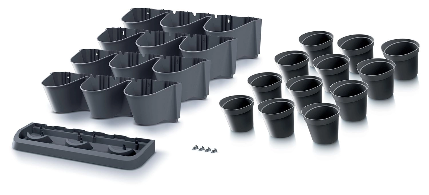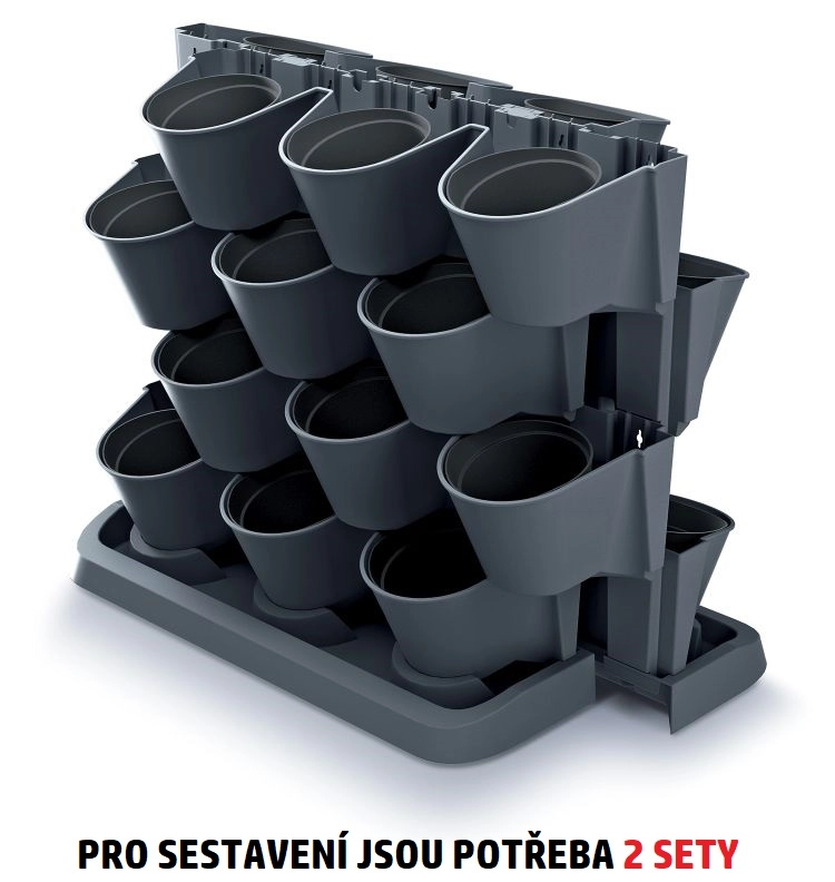 Ta pametni set vertikalnih loncev omogoča gojenje več rastlin na minimalnem prostoru. Zahvaljujoč zložljivim modulom in odstranljivim vložnim posodam boste zlahka uredili zelišča, sukulente in viseče rastline v elegantno zeleno kompozicijo. Antracitna izvedba deluje moderno in je primerna za balkon, teraso in notranje prostore.