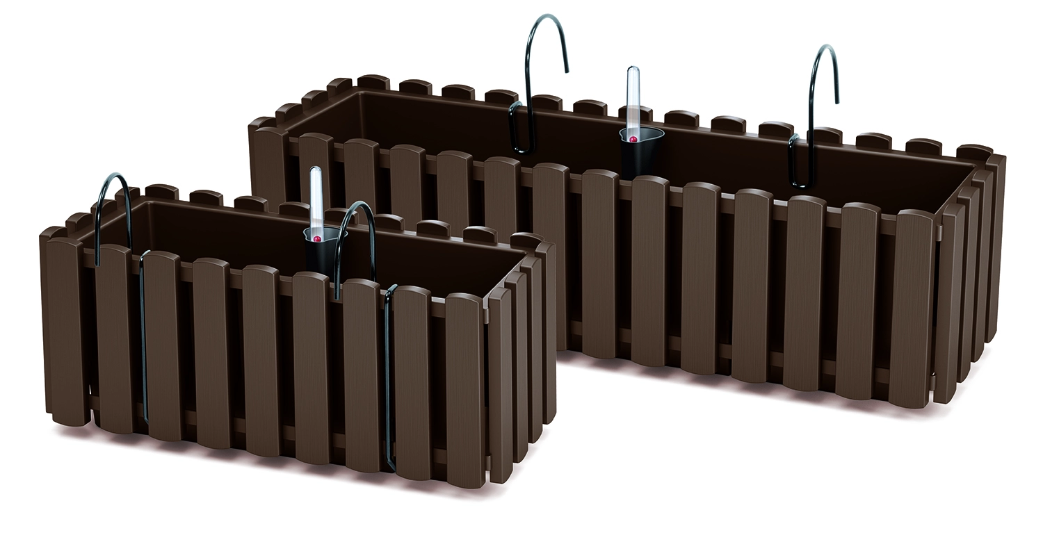 Uživajte v zeleni oazi tudi na majhnem prostoru. Viseče korito s kovinskimi nosilci se preprosto pritrdi na ograjo in spremeni balkon ali teraso v cvetoč kotiček. Dekor, ki posnema lesene letvice, deluje naravno in se poda tako k modernemu kot podeželskemu zunanjemu slogu.