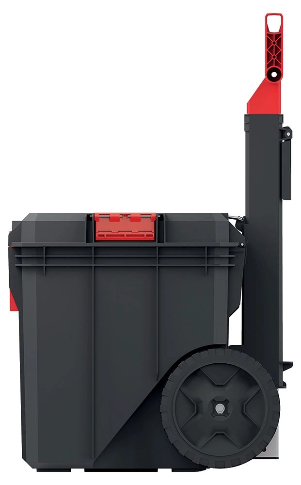 Velika, odporna kolesa in izvlečni ročaj omogočajo udoben premik tudi popolnoma naloženega kovčka po delavnici, gradbišču ali neravni podlagi.