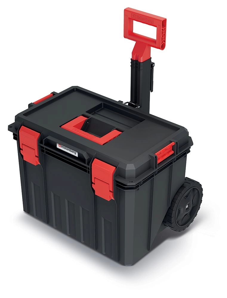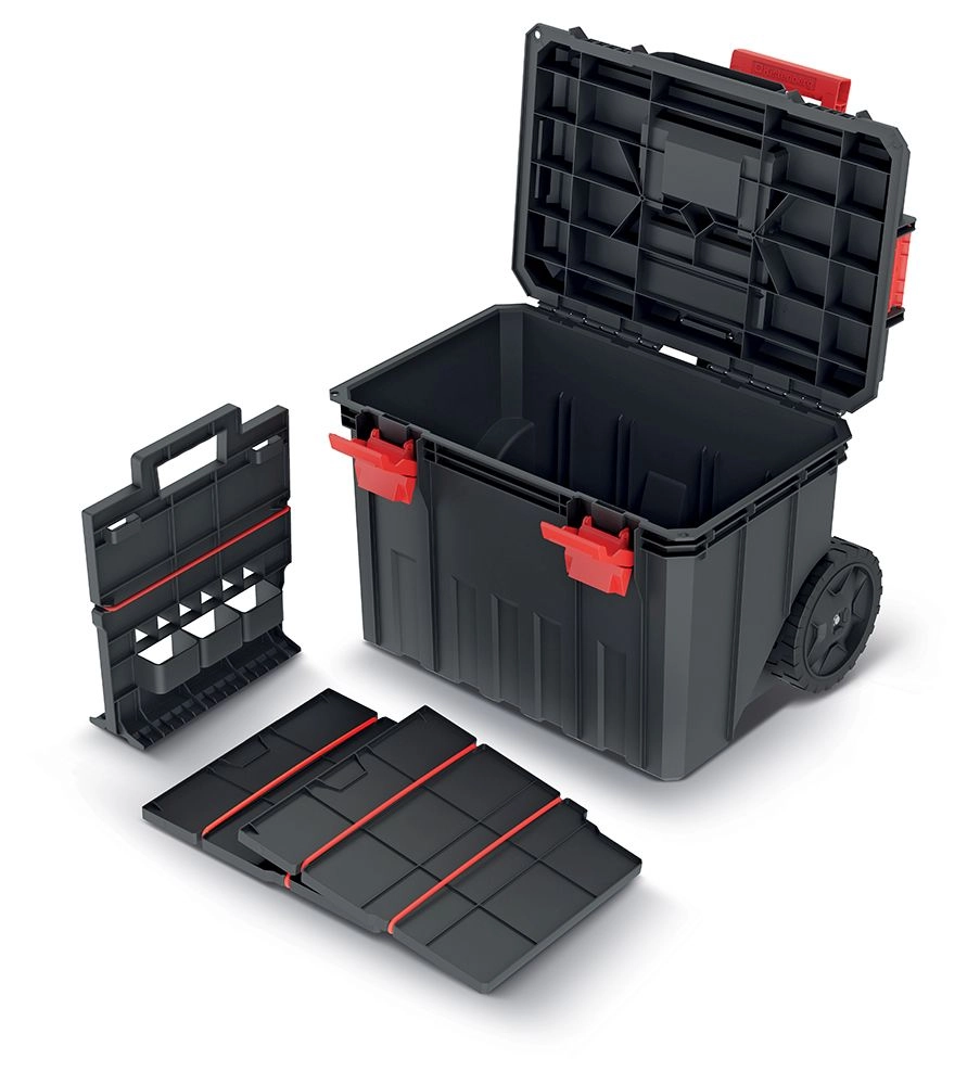 Kovček za orodje z merami 530 × 355 × 390 mm je zasnovan za vsakodnevno uporabo na gradbišču, v delavnici ali garaži. Velika kolesa, teleskopski ročaj in zgornji trdni ročaj zagotavljajo udobno in varno manevriranje, medtem ko robustna plastika prenese udarce in zahtevne pogoje.