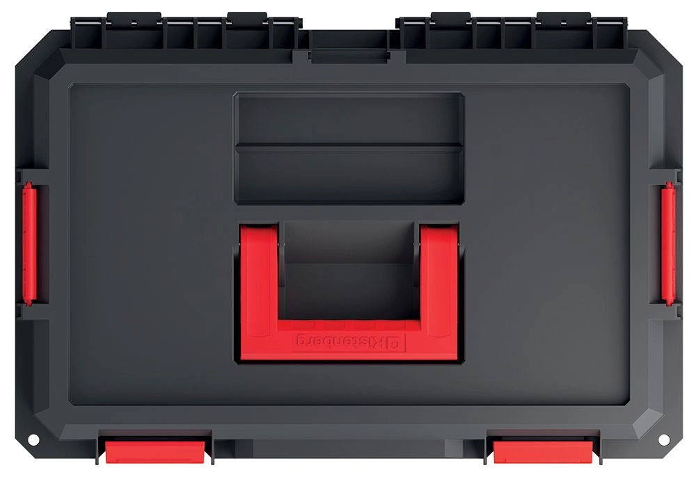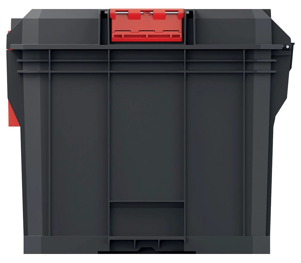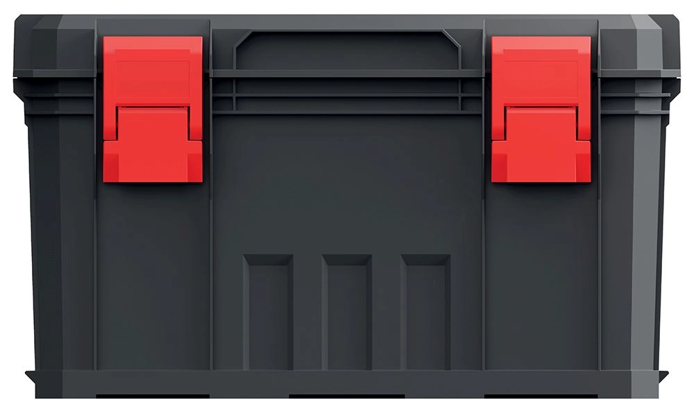 Notranji prostor lahko zahvaljujoč 2 odstranljivima pregradama preuredite v hipu. Lahka in odporna plastična konstrukcija ščiti vsebino pred poškodbami in hkrati olajša rokovanje. Ergonomski ročaj in čvrsto zapiranje poskrbita za varen transport v delavnico ali na gradbišče.