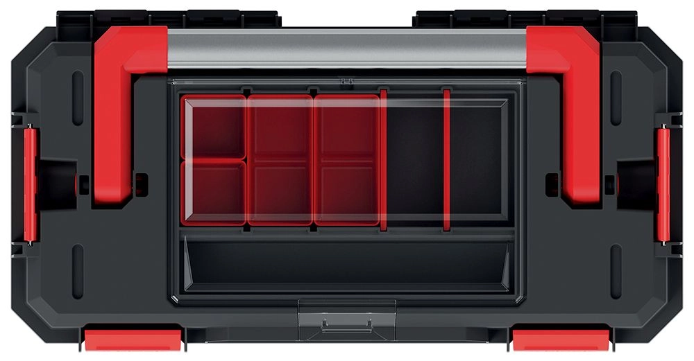 Zgornji pokrov skriva pregleden organizator za drobne sestavne dele. Zahvaljujoč prozornemu pokrovu takoj vidite vsebino in pospešite delo brez nepotrebnega iskanja.
