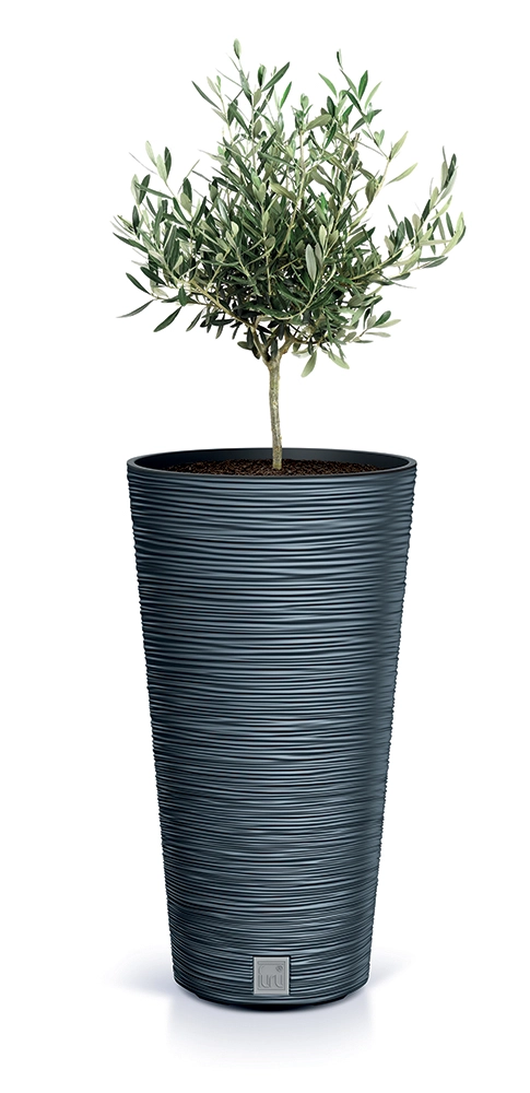 Eleganten cvetlični lonec Furu Slim s premerom 30 cm je odlična izbira za sodobno stanovanje ali teraso. Njegova vitka, stožčasta silhueta in izrazita vodoravna tekstura v antracitu poudarita vsako zelenje – od oljk do sobnih palm. Trpežen plastičen material zagotavlja nizko težo in dolgo življenjsko dobo.