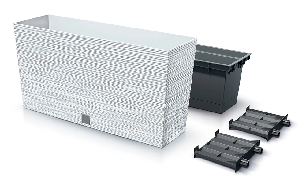 Stilsko korito Furu M dolžine 77 cm v elegantni beli barvi je idealno za balkon, teraso in notranje prostore. Rebrasta površina daje sodoben videz in povečuje stabilnost. Trpežna plastika z UV-zaščito zagotavlja dolgo življenjsko dobo, praktičen notranji vložek pa olajša sajenje in vzdrževanje.