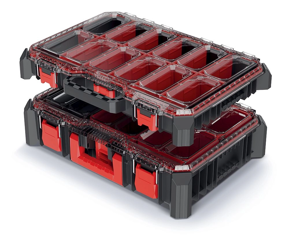 Organizatorji so primerni za vijake, vložke, žeblje, bite, svedre ali ustvarjalne pripomočke. Zaradi modularne razporeditve lahko notranji prostor preprosto prilagodite trenutnim potrebam in brez napora ohranjate red.