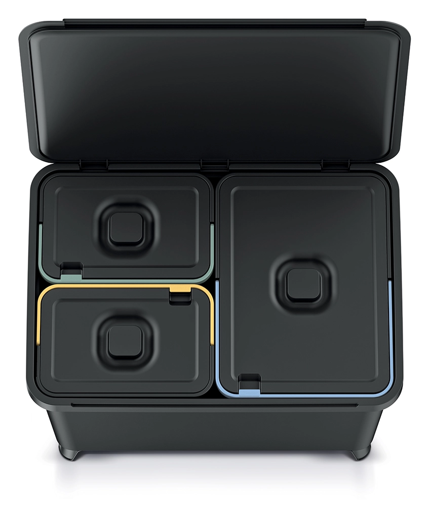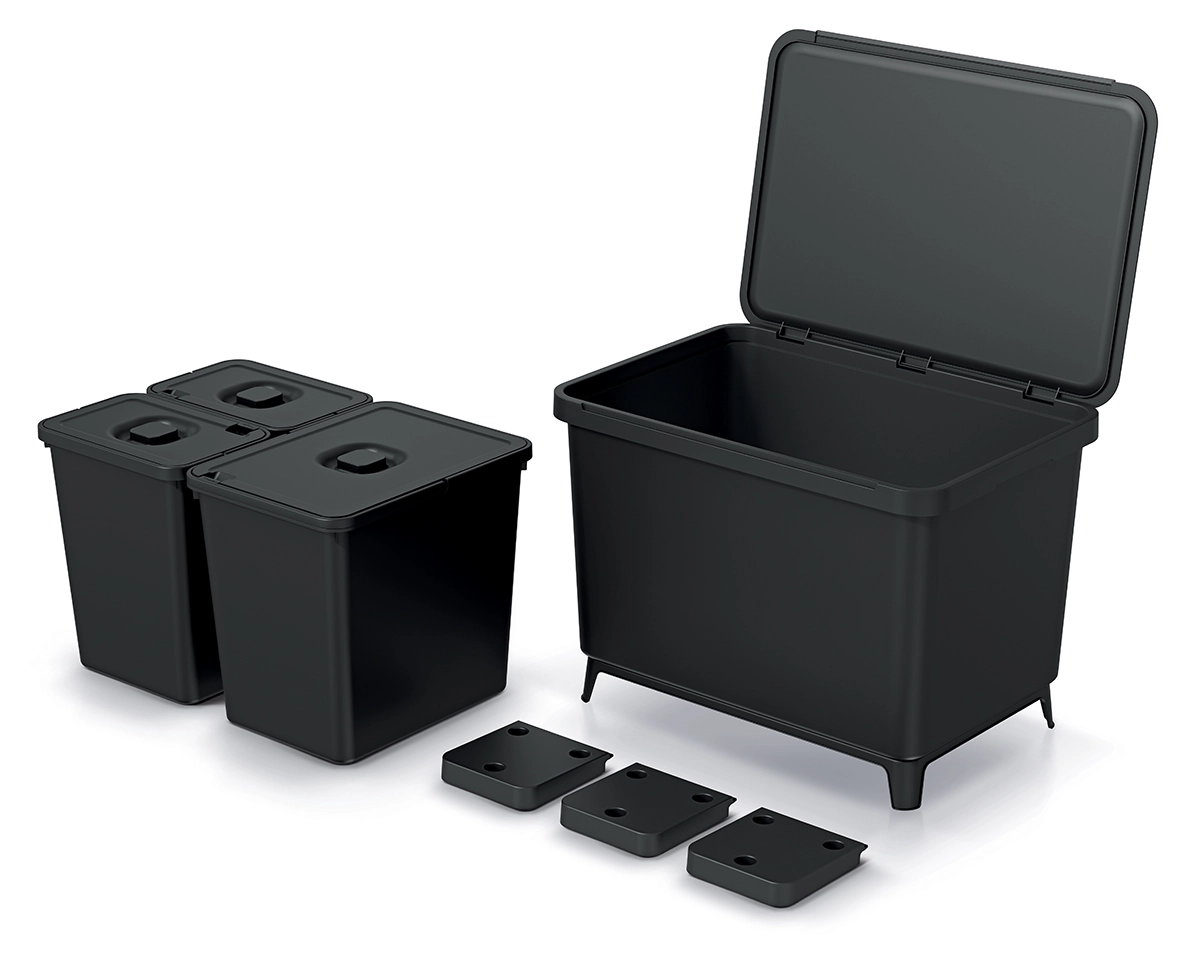 - Tri samostojne posode – 1× 23 l za mešane odpadke in 2× 10 l za ločevanje.