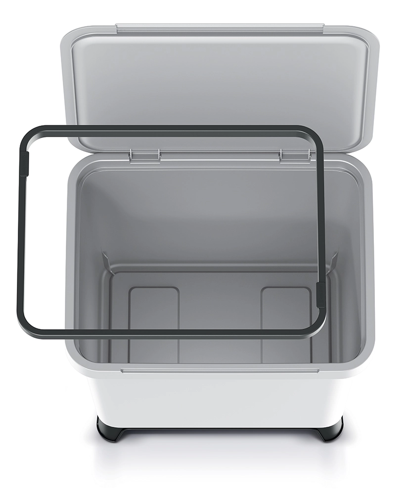 Stilski in diskreten koš v pepelnatem odtenku se poda tako v moderne kot klasične prostore. Zahvaljujoč prostornini 29 litrov zlahka obvladuje vsakodnevne odpadke, medtem ko kakovostna plastika olajša čiščenje in povečuje odpornost proti obrabi.