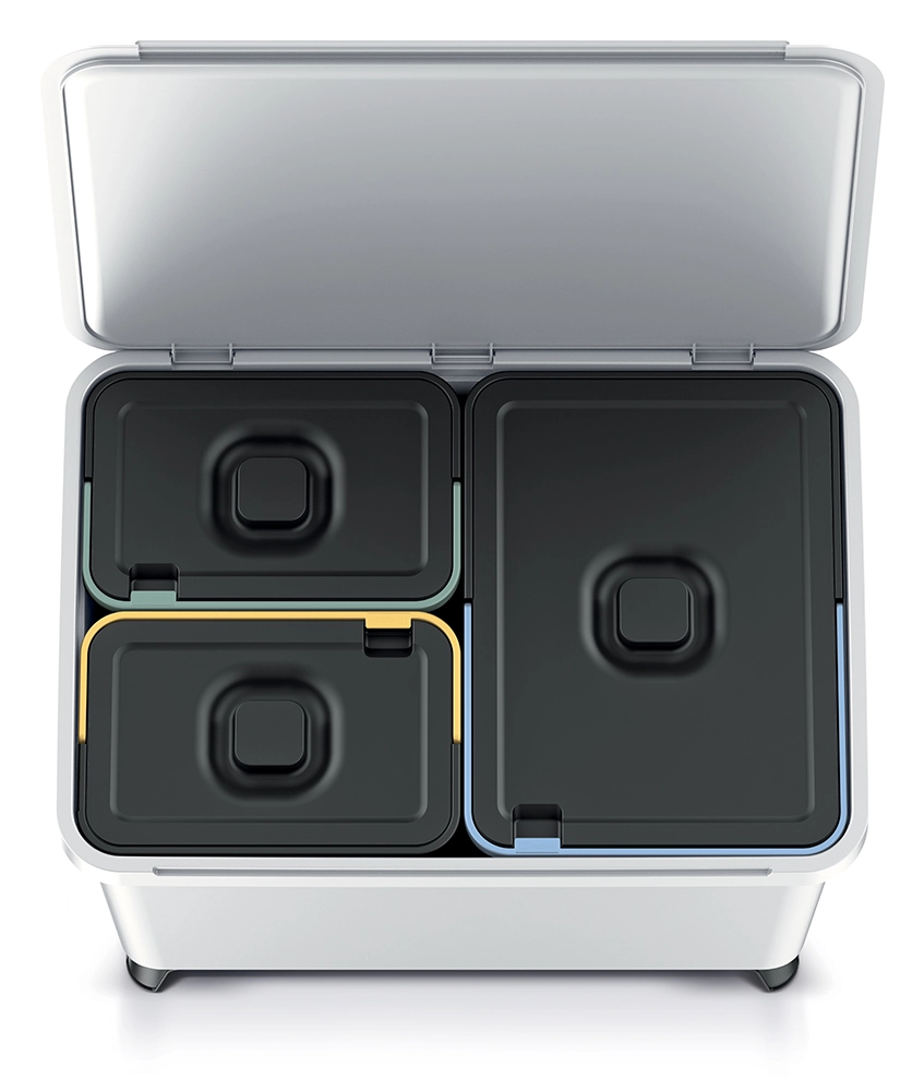 Odstranljivi notranji zaboji z ročaji poenostavijo prenašanje, gladke površine se hitro čistijo, pokrov pa pomaga omejiti neprijetne vonjave.