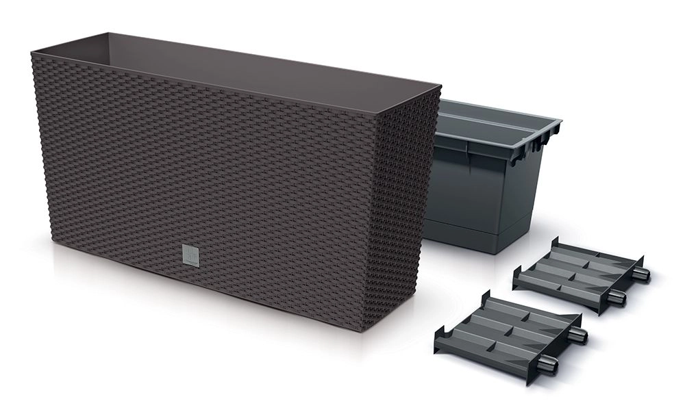 Slogovno korito Rato Case M v barvi umbra združuje naraven videz in praktično zasnovo. Tekstura, ki posnema ratan, odlično dopolni sodobna in klasična okolja na balkonu, terasi ali pri vhodu v hišo. Integrirani vložek olajša sajenje in presajanje, skrajša čas vzdrževanja ter pomaga ohranjati optimalne pogoje za rast rastlin.