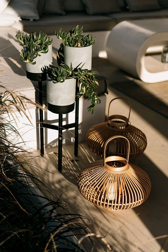 Trije lončki v različnih višinah zagotavljajo optimalen dostop svetlobe in ustvarjajo vizualno privlačno kompozicijo, ki poživlja vsak prostor.