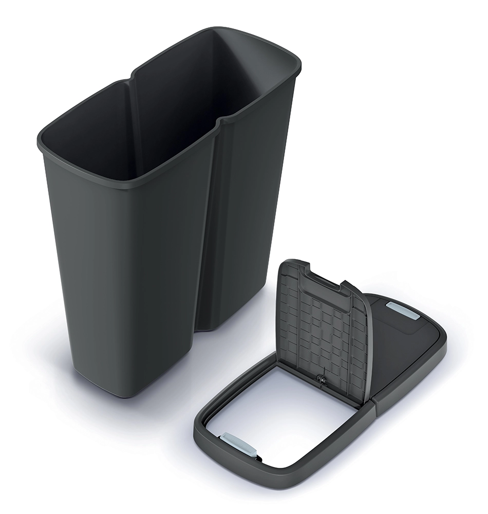 - Učinkovito ločevanje – možnost pritrditve 1 ali 2 vrečk za ločevanje odpadkov