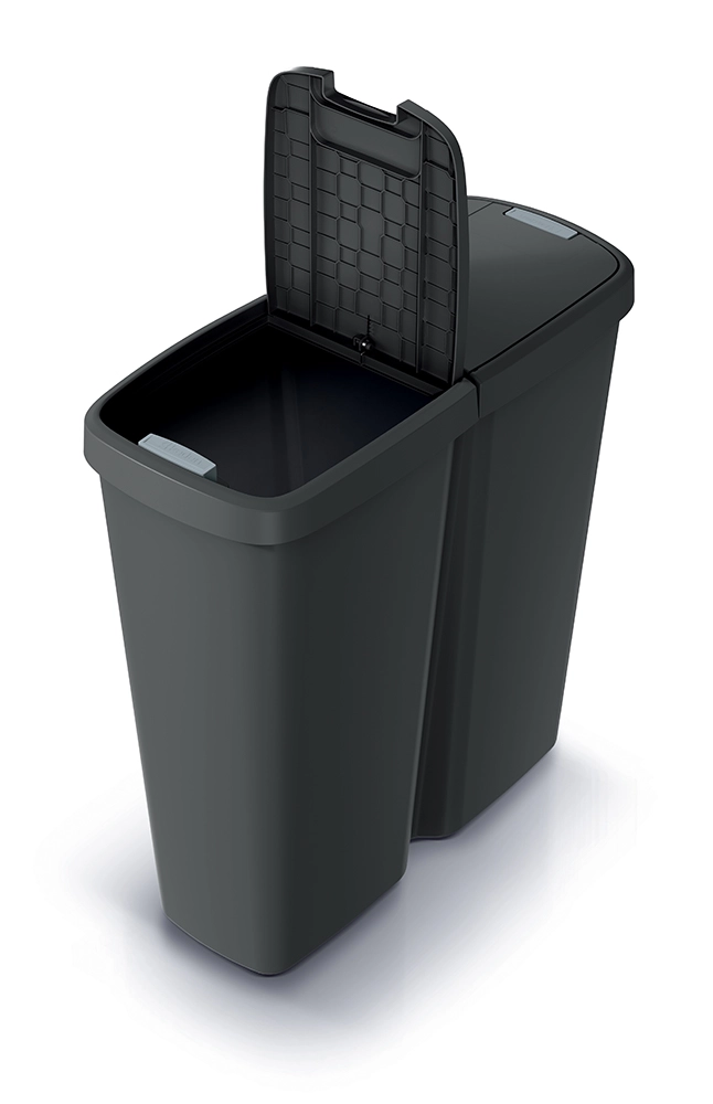 Iščete prostorsko varčno in hkrati okolju prijazno rešitev za ločevanje odpadkov? Koš Prosperplast Compacta Q Duo prinaša pametno zasnovan sistem z eno notranjo posodo in dvojnim pokrovom, ki omogoča pregledno ločevanje različnih vrst odpadkov. Zahvaljujoč gumbnemu odpiranju je rokovanje hitro in higiensko tudi v bolj obremenjenih okoljih.