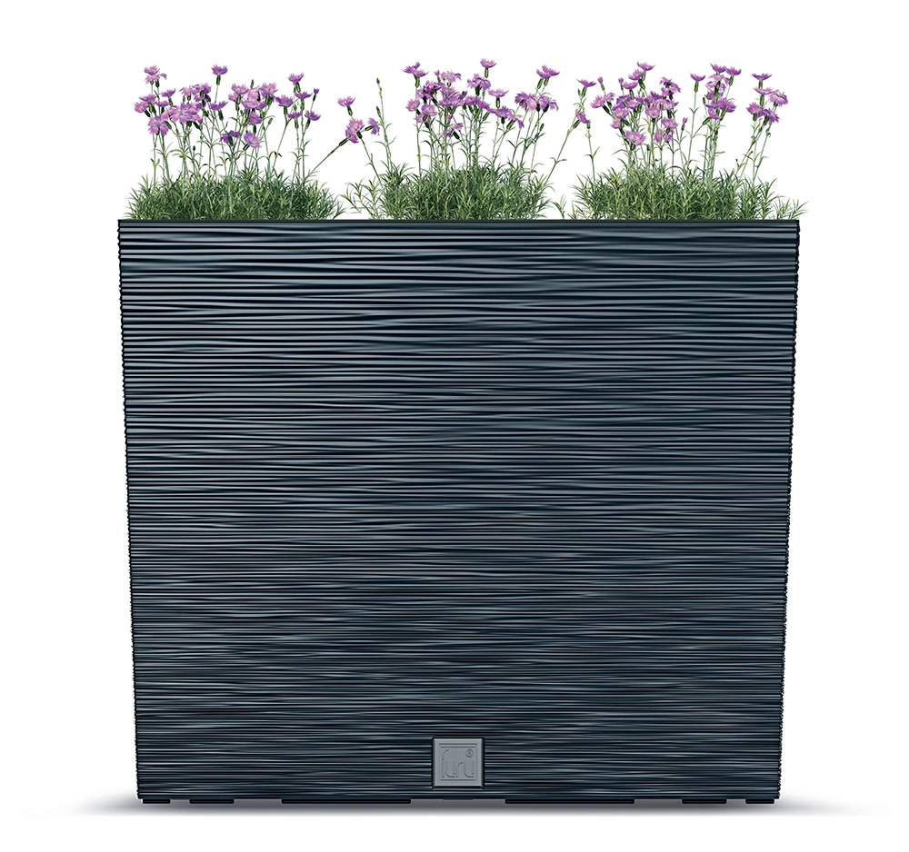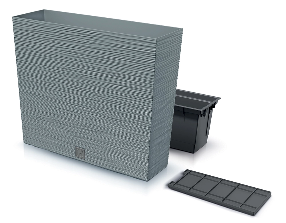 Elegantno rebrasto korito v univerzalni betonsko sivi barvi je primerno za teraso, balkon, vrt in notranje prostore. Zaradi čvrste plastične konstrukcije ohranja obliko, je lahko za prenašanje in brez skrbi prenese celoletno uporabo.