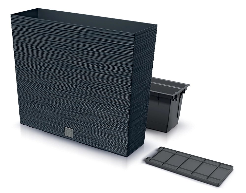 Del kompleta je odstranljiv notranji vložek (12 l) s podstavkom za učinkovito odvajanje vode in enostavno ravnanje pri sajenju. Samonamakalni sistem ohranja stabilno vlažnost substrata, kar koristi cvetlicam, zeliščem in manjšim okrasnim travam.