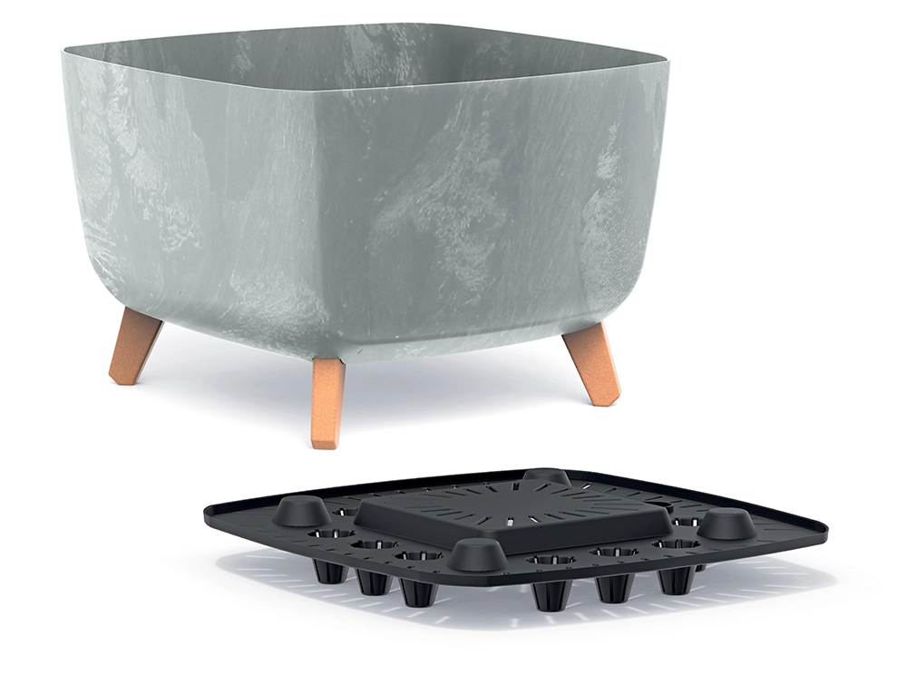 Ekološka sestava iz plastike s 33 % deležem lesa zagotavlja manjši okoljski odtis in prijetno teksturo. Vgrajen namakalni sistem ohranja optimalno vlago substrata in olajša nego rastlin. Stabilne nogice zagotavljajo čvrsto postavitev ter ščitijo površine pred vlago in praskami.