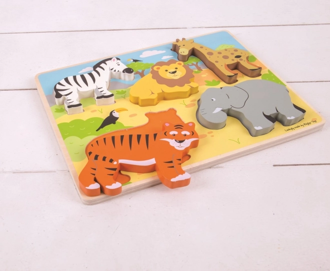 Izdelano iz kakovostnega, odgovorno pridobljenega lesa in zasnovano tako, da izpolnjuje aktualne evropske varnostne standarde. Puzzle vsebuje 5 velikih koščkov s safari motivi, ki otrokom prinašajo veselje ob odkrivanju in učenju.