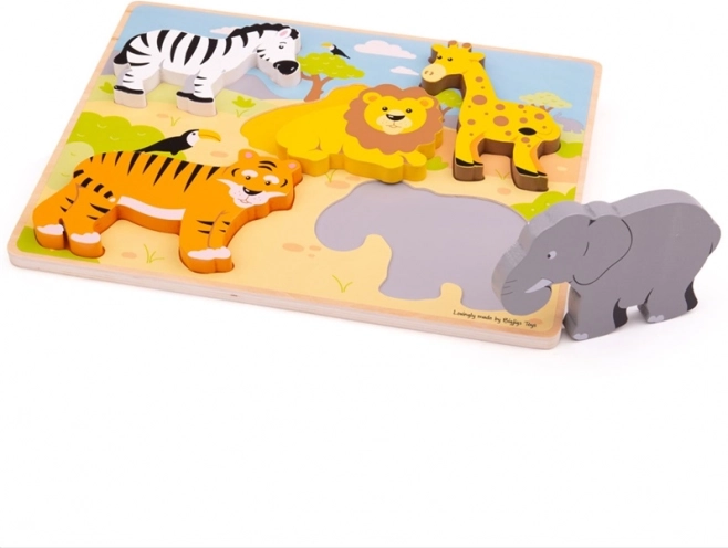 Odkrijte zabavno leseno vstavljanko s safari motivi, ki podpira zgodnji razvoj otroka. Puzzle ponuja velike, lahko oprijemljive koščke, s katerimi si otroci urijo fino motoriko, senzorično zaznavanje in koncentracijo. Tisk na osnovni plošči pomaga pri pravilnem razvrščanju oblik in barv ter povečuje izobraževalno vrednost igre.