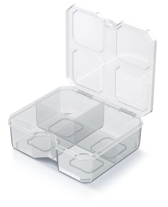 Ohranite red s kompaktnih organizatorjem SQR box, ki je idealen za razvrščanje vijakov, žebljev, pisarniških sponk in drugih drobnarij. Prozoren pokrov ščiti vsebino pred prahom in nečistočami ter hkrati omogoča takojšen pregled.