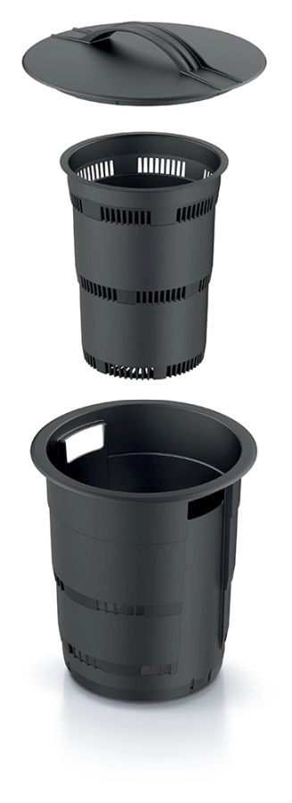 - Preprosto vzdrževanje – odstranljiv pokrov za hitro dodajanje odpadkov.