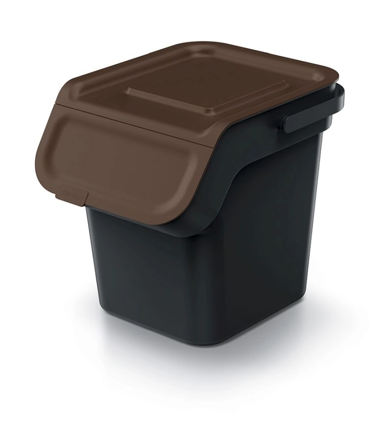 Vsak koš je izdelan iz reciklirane črne plastike in je opremljen z barvno loputo za enostavno prepoznavanje frakcij (papir, plastika, bio, steklo). Zamenljiv filter z aktivnim ogljem učinkovito absorbira vonjave, medtem ko notranji okvir zadrži vrečko na mestu brez drsenja.