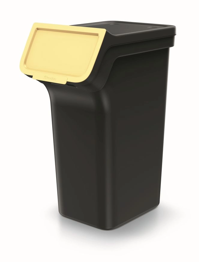 Vsaka posoda je izdelana iz reciklirane plastike, ki je odporna na alkohol, maščobe in olja, in se enostavno čisti s toplo vodo in blagim sredstvom. Praktičen pokrov z zaskočnim odpiranjem ter okvir za pritrditev vreče olajšata vsakodnevno uporabo.