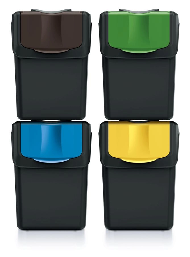 Set košev za ločevanje odpadkov Sortibox prinaša premišljeno rešitev za red in trajnosten življenjski slog. Zaradi kompaktnih mer in možnosti varnega zlaganja enega na drugega boste učinkovito izkoristili vsak centimeter prostora. Barvno ločeni pokrovi in priložene nalepke s simboli poskrbijo za hitro orientacijo celotne družine.