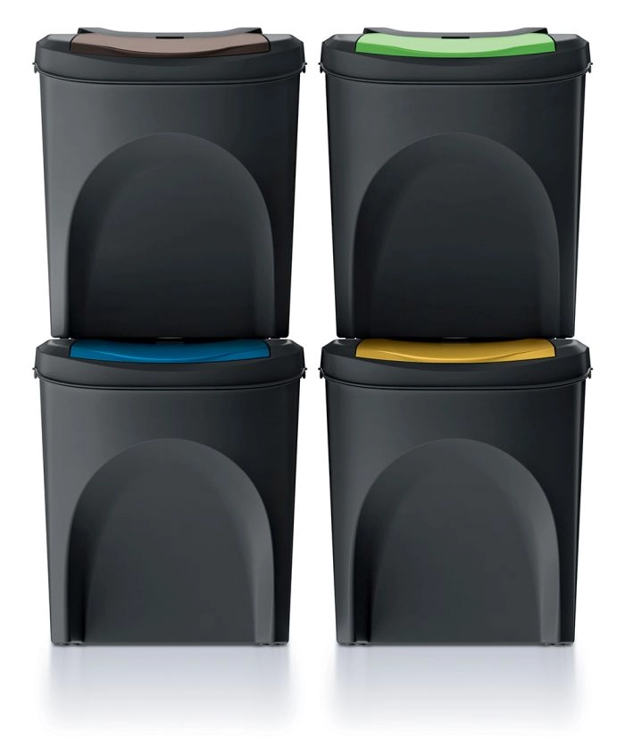 Set košev SORTIBOX prinaša pametno rešitev za učinkovito ločevanje odpadkov. Posebno oblikovani pokrovi z vdolbinami omogočajo varno zlaganje enega na drugega, zato prihranite prostor tudi v manjših okoljih. Moderna reciklirana črna barva se poda v vsak interier in ne priteguje odvečne pozornosti.