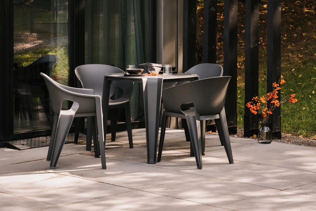 Mere 77,5 × 77,5 × 76,5 cm so idealne za balkone, terase in manjše jedilnice, ne da bi trpela udobnost pri obedovanju.