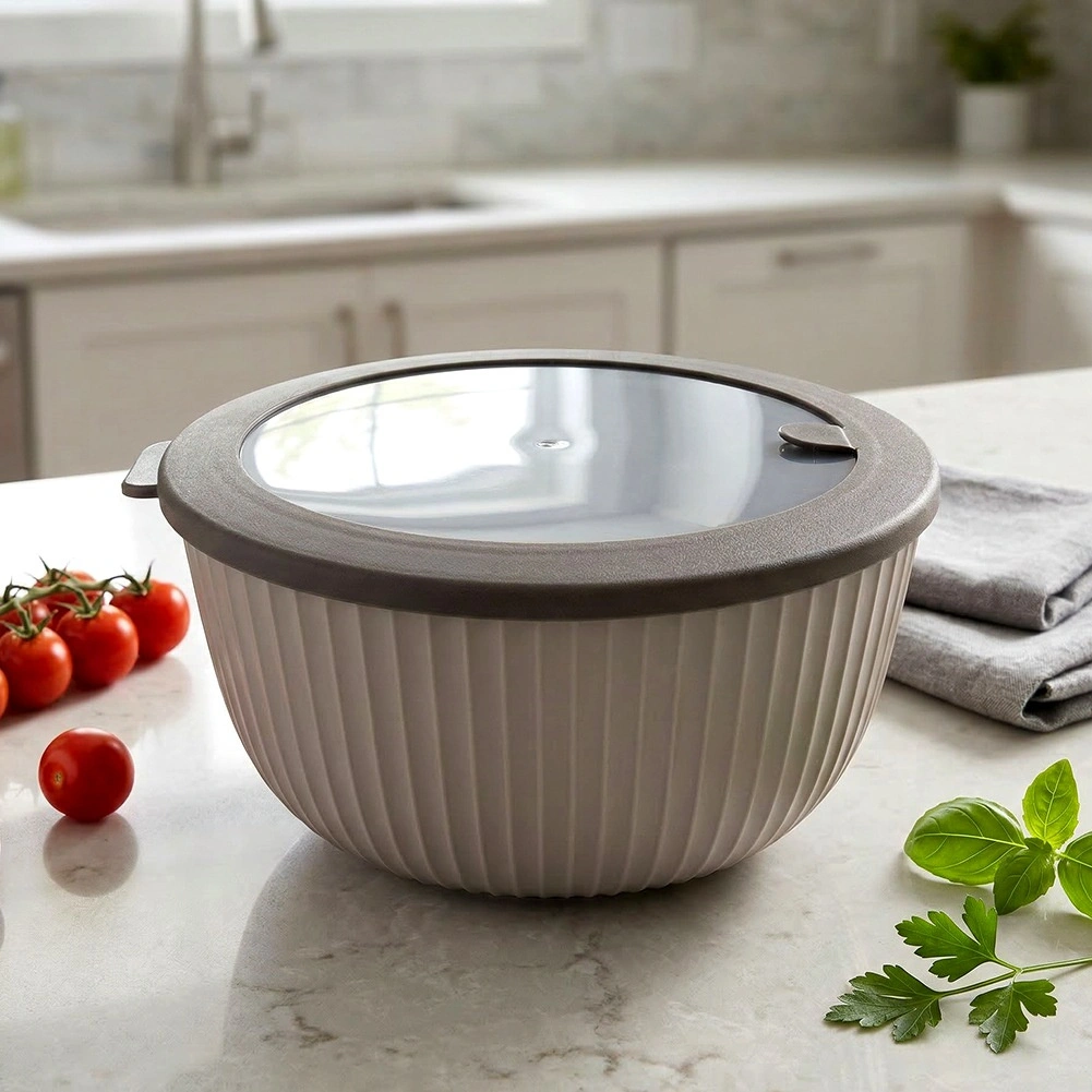 Praktična kuhinjska skleda s prostornino 4 l in premerom cca 24,5 cm je idealna za mešanje, kvashenje testa, postrežbo solat ter shranjevanje in pogrevanje jedi. Ima prozoren pokrov z tesnilnim vložkom in odprtino za paro za mikrovalovko, je brez BPA, odporna od -25 °C do +95 °C in primerna za pomivalni stroj.
