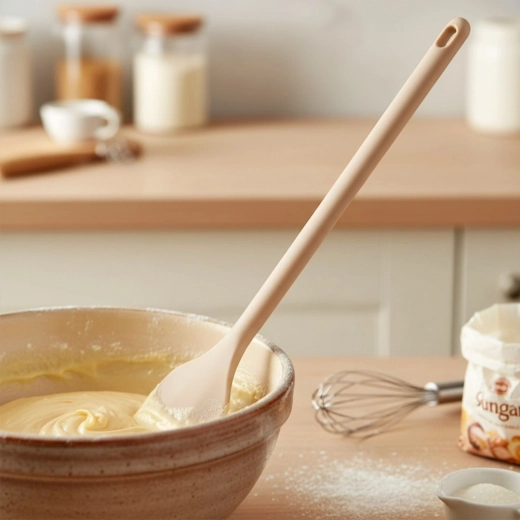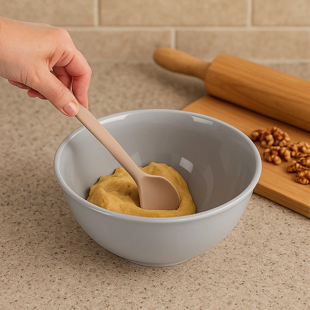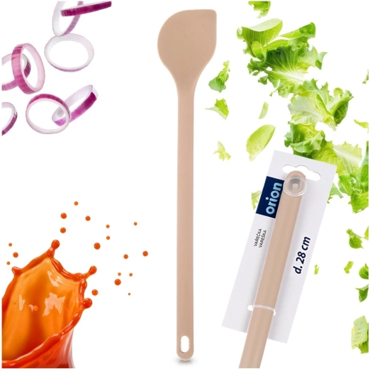 Ta vzdržljiva silikonska žlica bo postala nepogrešljiv pomočnik v vsaki kuhinji. Zahvaljujoč prožni glavi je odlična za mešanje test, omak in juh, pri tem pa ne opraska teflonskih, keramičnih ali granitnih površin. Silikon ne vpija vonjav in tekočin, zato je vzdrževanje nadvse preprosto.
