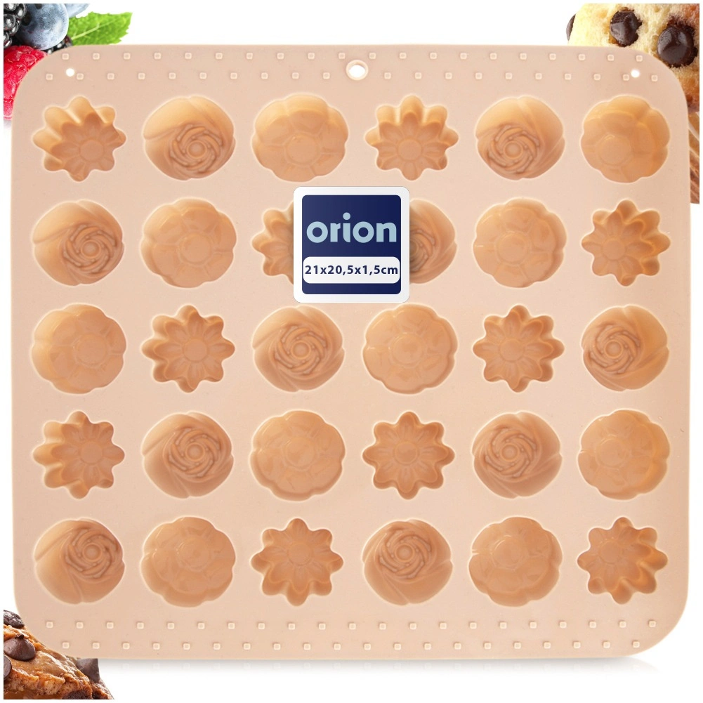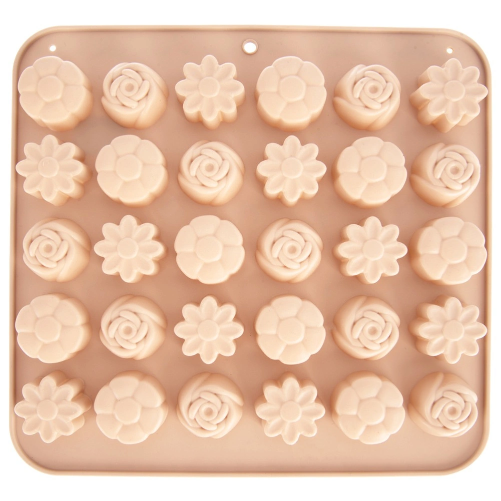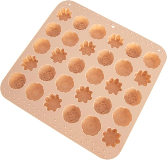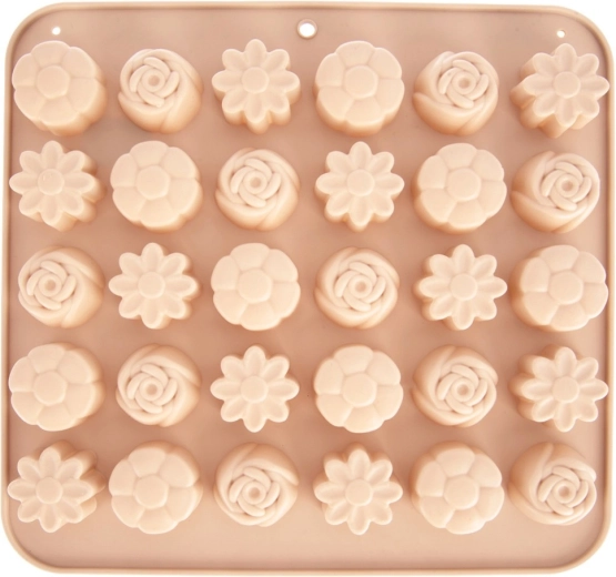 Ta vsestranski silikonski model v bež barvi olajša izdelavo domačih pralin, čokoladic in malih piškotov. Ponuja 3 različne cvetlične vzorce in skupaj 30 vdolbin, zato zlahka pripravite impresivno pogostitev in užitna darila. Zaradi prožnega in neprijemljivega materiala končne izdelke preprosto odstranite brez potrebe po maščenju.
